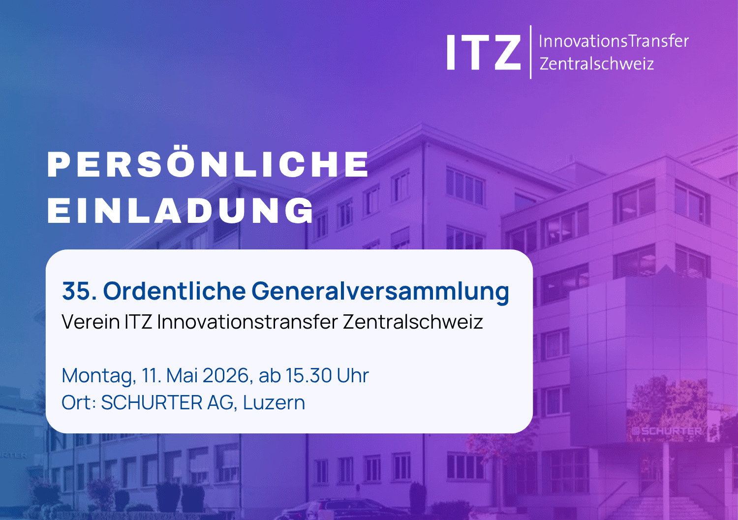 Empfohlen 35. Ordentliche Generalversammlung Verein ITZ InnovationsTransfer Zentralschweiz 11. Mai 2026 SCHURTER AG, Werkhofstrasse 8-12, 6005 Luzern